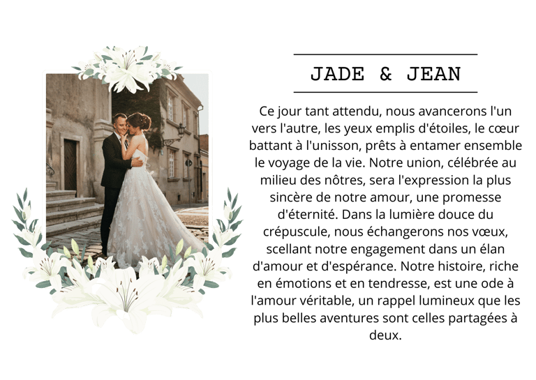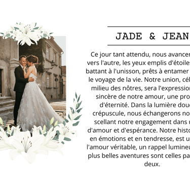 Programme au design élégant, entièrement personnalisé pour refléter l'essence unique de votre union.