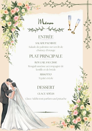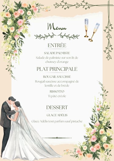 Conception graphiques de menu exceptionnels, parfaitement alignés avec le thème de votre mariage, pour éblouir vos invités et enrichir votre célébration.